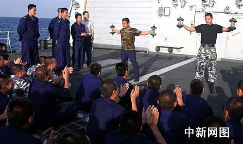 中新網(wǎng)“海口”艦1月9日電,中國海軍護航編隊“海口”號導彈驅逐艦舉行甲板運動會,以豐富官兵在護航期間的文體生活,甲板運動會共設六個比賽項目,分三個下午舉行,今天首場舉行啞鈴、臂力棒項目的比賽。