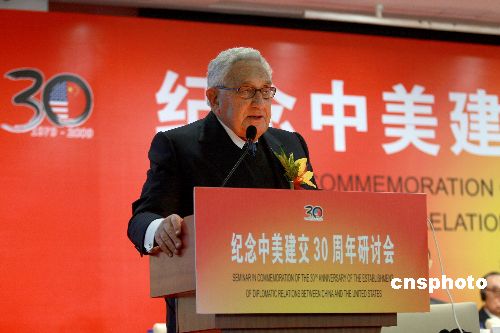 圖為美國前國務(wù)卿基辛格在研討會(huì)上致辭。中新社發(fā) 鄭雄增 攝