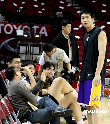 當?shù)貢r間1月13日晚,在美國NBA效力的中國兩大國手姚明與孫悅相逢休斯頓。當晚,休斯頓火箭隊在主場迎來洛杉磯湖人隊的挑戰(zhàn),分別效力于火箭和湖人隊的中國國家隊隊友姚明與孫悅(右一)在賽前見面。中新社發(fā) 歐文 攝