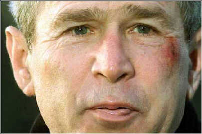 2002年1月,布什由于吞下一塊脆餅干導致短暫的心率放緩而昏倒。頭撞到地板上,造成左顴骨擦傷,下嘴唇也有一處挫傷。