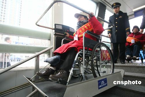 1月16日是北京市第七個無障礙推動日。北京市殘聯、老齡辦、婦聯和東城區殘聯聯合組織殘疾人志愿者在東直門交通樞紐現場,體驗無障礙出租車及機場快軌無障礙設施帶來的方便與快捷。