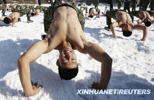 1月19日,在韓國首都首爾以東約180公里的平昌,一些韓國特種兵在進行一年一度的嚴冬特訓。