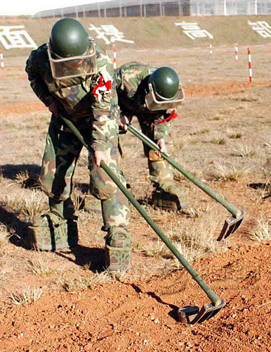 多功能掃雷耙是我掃雷一線人員在實地掃雷過程中發明的。其發明者從豬八戒的釘耙開始琢磨:地雷通常采用壓發裝置起爆,達到殺傷目的,而從側面受力則不會引爆。如果有類似的釘耙,就能把地雷鉤出。“多功能掃雷耙”就是基于此發明的。該掃雷耙看似簡單,但它具有排雷簡單,實用,輕便,制造成本低等特點。