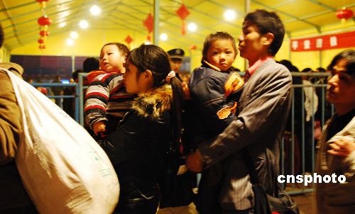 1月30日,江西九江火車(chē)站迎來(lái)返程農(nóng)民工客流高峰。據(jù)了解,全天發(fā)送旅客同比增長(zhǎng)31%。中新社發(fā) 胡國(guó)林 攝