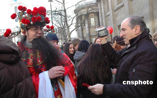 圖:中國“財神爺”倫敦派發新年紅包