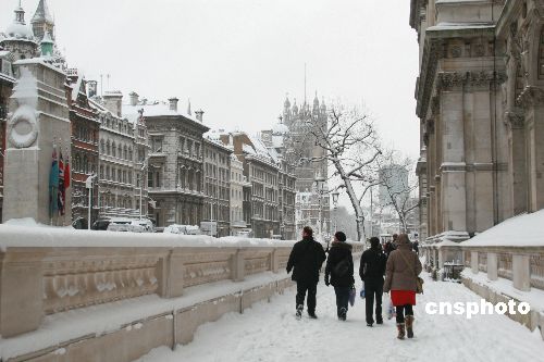 圖為英外交部附近街道覆蓋著厚厚的積雪。中新社發 李鵬 攝