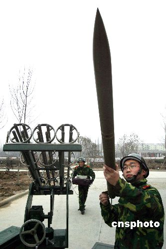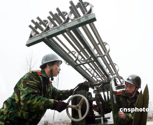 2月3日下午,安徽淮北人工影響天氣作業基地的工作人員移動火箭發射架進入作業狀態。當日,淮北氣象臺舉行名為“閃電”人工催雨演練,以備戰可能形成催雨作業天氣條件的人工降雨。目前,安徽省遭遇特大旱情,安徽省氣象臺2月1日10時發布干旱紅色預警,預計未來一周淮河以北地區有60%以上農作物受旱。