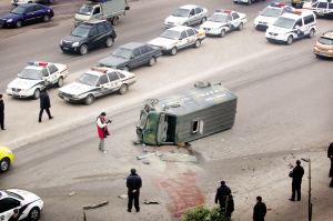 運送傷員時,馮明勇吃驚地看到,運鈔車車內有3支槍!