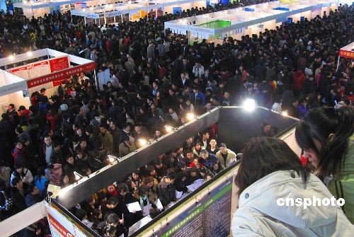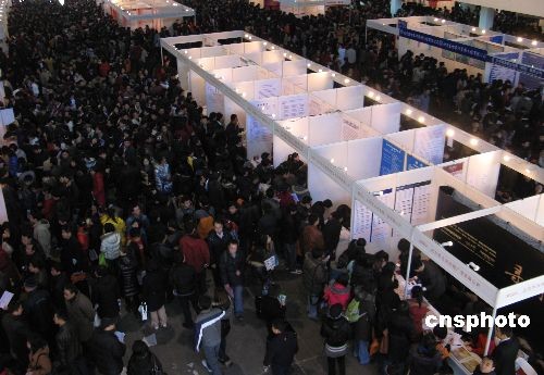 2月7日,一年一度的北京最大規(guī)模招聘盛會(huì)——“北京‘共創(chuàng)未來’大型人才招聘會(huì)”在中國國際展覽中心舉行。本次大會(huì)由北京多家人才聯(lián)合主辦,設(shè)立展位近千個(gè),展會(huì)開放四個(gè)展館,2號(hào)館為IT、電子、通訊專館,3號(hào)館為建筑房地產(chǎn)、現(xiàn)代制造業(yè)、生物醫(yī)藥及廣告?zhèn)髅綄p^,4號(hào)館、8B號(hào)館為綜合招聘館。在京10萬高校畢業(yè)生前往應(yīng)聘。