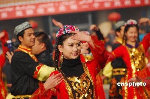 2009年2月9日,新疆塔克拉瑪干沙漠腹地邊城和田鑼鼓喧天,萬民歡騰,各族兒女身披節日的盛裝,載歌載舞,在和田市廣場舉行大型社火活動,表達和田各族人民的美好祝愿。