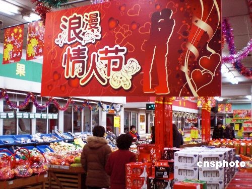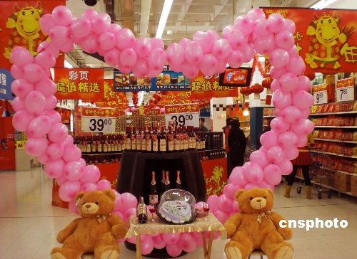 2月11日,情人節臨近,天津商場節日氣氛漸濃,各大商家也開始精心布置門面,迎接“情人節”購物季的到來,一場“情人節”商戰正在悄然打響。中新社發 金立冬 攝