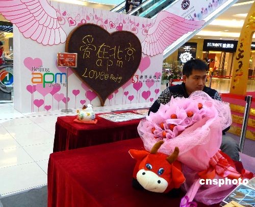 2009年2月11日,北京王府井各商場紛紛營造出濃郁的情人節氣氛,迎接西方情人節的到來。 中新社發 玉龍 攝