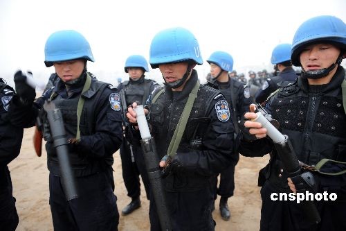 圖:中國赴海地維和警察防暴隊冒雨訓練(4)