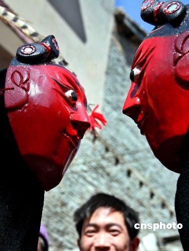 2月12日是農歷正月十八,貴州省安順市西秀區吉昌屯舉辦隆重的“抬汪公”活動,是屯堡村寨每年最隆重的活動之一,四鄉八寨的村民都會來到汪公祠堂燒香拜祖神,祭祀汪公。“抬汪公”是屯堡人祖輩傳承的重要盛典。每年正月十六凌晨,屯堡人就把紅面長須身穿官袍的“汪公”他老人家從平日香火侍奉的“汪公廟”里請出,端放在一個紅錦緞扎成的轎子里,由全屯最有威望的老人引路,轎前有儀仗隊鳴鑼開道,轎后跟隨高妝彩車、蓮船、地戲隊,前呼后擁,游鄉串寨,熱鬧非凡。中新社發 彭年 攝