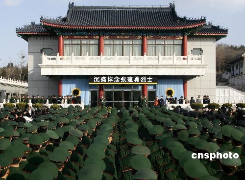 2月14日上午,張建勇烈士遺體告別儀式在北京八寶山殯儀館舉行,北京市相關(guān)單位負責人以及烈士親屬、戰(zhàn)友、生前好友600余人參加。2月10日凌晨1時40分,北京市公安局消防局朝陽支隊紅廟中隊指導(dǎo)員張建勇,在撲救央視新址附屬文化中心在建工地重大火災(zāi)中壯烈犧牲,離他30歲生日僅有16天。2月12日,中國公安部批準張建勇為革命烈士。中新社發(fā) 富田 攝
