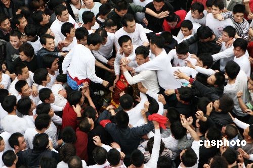 2月16日,農歷正月二十二,廣東汕頭市鹽灶村舉行獨特的傳統“搶財神”活動。活動中,一些被挑選出來的村民將廟里的神像抬出來游行,其他村民則競相涌上前觸摸甚至奪取、拖行神像。按照村里的老話:“老爺公喜歡拖,越拖越興旺。”這一獨特盛會吸引了數千人前來助威觀看,比過春節還熱鬧。