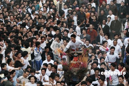 圖:廣東汕頭鹽灶村 人山人海“搶財神”(2)