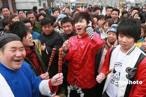 圖:花兒樂隊向“叫賣大王”學“叫賣”(2)