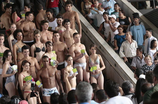 巴西利亞的公交車站,模特身著性感內衣慶祝內衣節開幕。