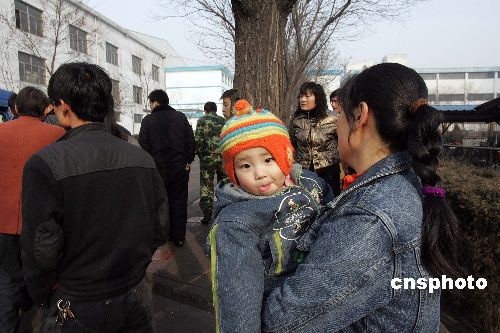 圖為親人生死未卜,年輕的母親焦急萬分,懷中的小孩并不知悲慘的事故已發生。