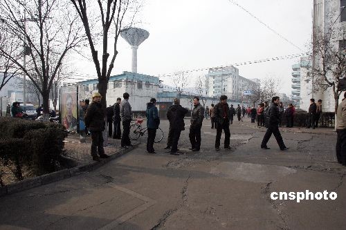 圖為圍觀的礦工親屬久久不愿離去。中新社發 張云 攝