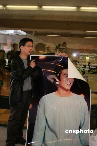 轟動一時的香港“艷照門”男主角陳冠希23日首次在溫哥華出庭作證,一名溫哥華男子在法院門口打出大幅海報,自稱是陳冠希的“粉絲”。中新社發 呂振亞 攝