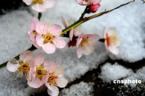 桃花傲雪盛放