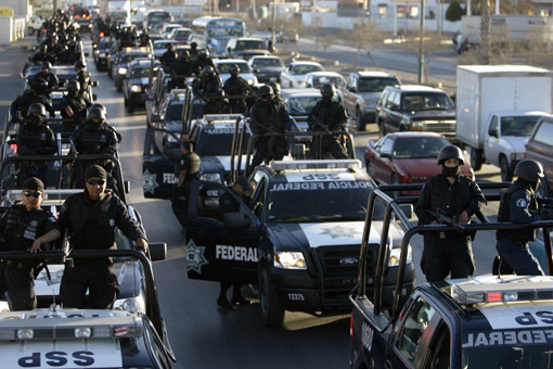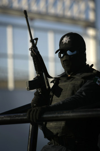 3月2日,墨西哥士兵和警察陸續(xù)抵達墨西哥北部城市華雷斯,以加強對當(dāng)?shù)囟酒纷咚胶捅┝顒拥拇驌袅Χ龋S持治安。 華雷斯市與美國接壤,由于地理位置的特殊性,該市成為墨西哥販毒及暴力犯罪活動最為猖獗的地區(qū)之一,就在2008年,華雷斯就有1600余人遇害,被稱為墨西哥的“鬼城”。