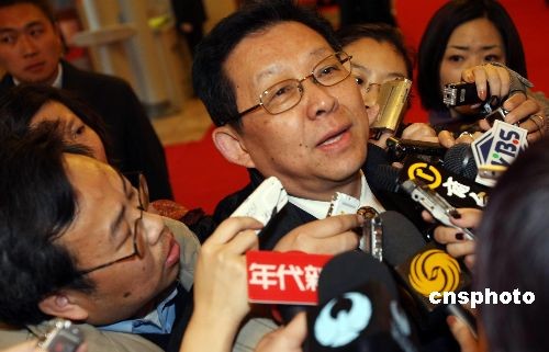 3月3日下午,商務(wù)部部長陳德銘參加全國政協(xié)十一屆二次會議開幕會時(shí)被記者圍堵采訪,他表示中國的經(jīng)濟(jì)仍然在增長,不能說進(jìn)入衰退。中新社發(fā) 傅丹丹 攝