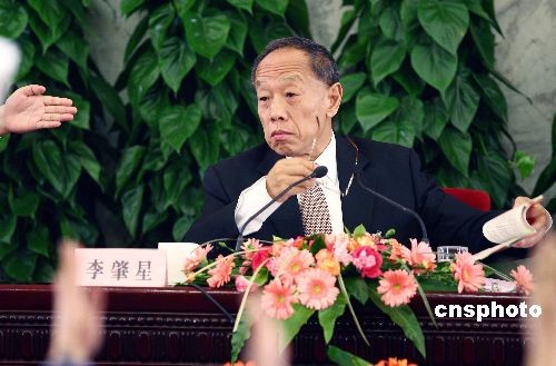3月4日,十一屆全國(guó)人大二次會(huì)議在人民大會(huì)堂一樓新聞發(fā)布廳舉行新聞發(fā)布會(huì),大會(huì)發(fā)言人李肇星在回答中外記者提問時(shí),手中拿著一本《中華人民共和國(guó)憲法》。中新社發(fā) 杜洋 攝
