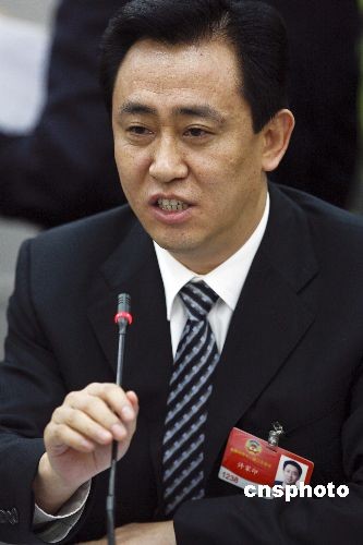 3月4日,全國政協十一屆二次會議在北京進行分組討論,全國政協委員、恒大地產主席許家印在分組討論上建議降低房價,讓利于民。中新社發 盛佳鵬 攝