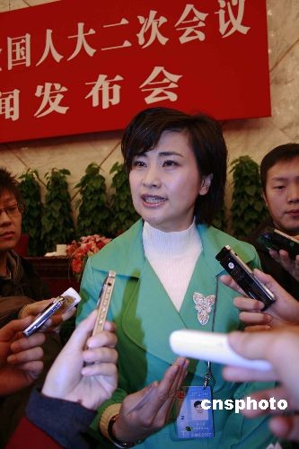 2009年3月4日,吳小莉參加十一屆全國人大二次會議新聞發布會時接受采訪,針對“香港如何應對金融危機”這一話題回答了記者提問。中新社發 金立冬 攝