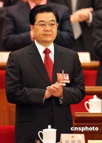 3月5日上午,十一屆全國人大二次會議在北京人民大會堂開幕,國家主席胡錦濤出席。中新社發(fā) 任晨鳴 攝