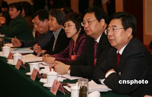 3月5日下午,山東代表團舉行全團會,審議政府工作報告。中共中央政治局委員、國務院副總理王岐山,全國人大常委會副委員長華建敏和代表們一起審議政府工作報告。中新社發 王輝 攝