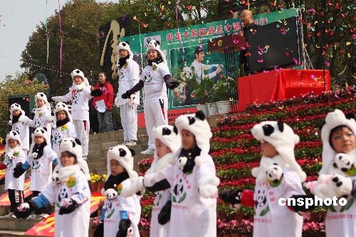 3月7日,在云南野生動(dòng)物園,來(lái)自昆明博愛(ài)聾兒康復(fù)中心的26名聾兒在表演節(jié)目,祝福分散在中國(guó)各地的26只大熊貓健康成長(zhǎng)。為答謝中國(guó)各地對(duì)四川災(zāi)區(qū)臥龍大熊貓的愛(ài)心援助,中國(guó)保護(hù)大熊貓研究中心特別策劃了“臥龍大熊貓感恩中國(guó)萬(wàn)里行”大型城市尋訪(fǎng)活動(dòng),3月7日,此次尋訪(fǎng)活動(dòng)的首站在昆明野生動(dòng)物園正式舉行。中新社發(fā) 保旭 攝
