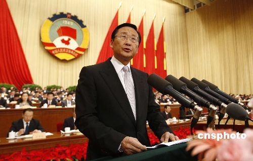 3月7日,全國(guó)政協(xié)十一屆二次會(huì)議在北京人民大會(huì)堂舉行第二次全體會(huì)議,全國(guó)政協(xié)常委、香港九龍倉(cāng)集團(tuán)主席吳光正作《應(yīng)對(duì)金融海嘯 擴(kuò)大內(nèi)需 展開改革開放“第二浪”》的發(fā)言。吳光正表示,全球金融海嘯帶來了“!保矌砹恕皺C(jī)”,中國(guó)要借“機(jī)”積極推動(dòng)改革開放的“第二浪”。中新社發(fā) 盛佳鵬 攝