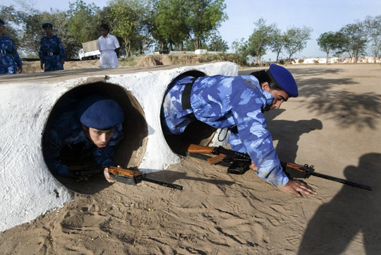 3月7日,婦女節前,在離印度阿默達巴德20公里處,印度陸軍快速反應部隊的女士兵進行了一場野外訓練。