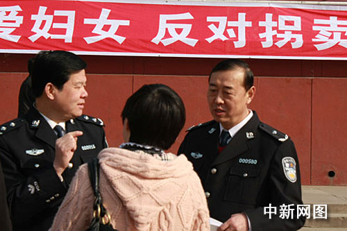 3月8日,一名婦女正尋求幫助。當日,甘肅警方聯合婦聯宣傳法律知識,旨在提高公眾反拐賣意識。