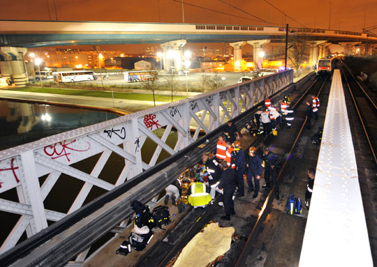 中新網3月8日電 當地時間7日22時30分,巴黎北部郊區發生火車撞人事件,目前已有2人死亡,11人受傷。調查人員稱,事故發生在法國大體育館附近。當時,一群法甲里爾隊的球迷正試圖通過一條高速路上方的鐵路高架橋,以返回大巴。沒想到被隨后駛來的城鐵撞上。