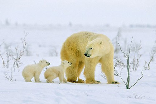據(jù)英國媒體3月9日報道,野生動物攝影師安迪-魯斯捕捉到了一組北極熊幼仔在春季到來后,首次離開洞穴學(xué)習(xí)走路的溫馨照片,兩只只有八周大的北極熊幼仔在春日的照耀下首次離開洞穴,它們在出生后首次面對寒冷的北極風(fēng)和食肉動物的威脅,它們的母親則在一邊對它們進(jìn)行保護(hù)。