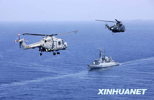 “和平-09”海上多國聯(lián)合軍事演習(xí)9日進(jìn)入海上實(shí)兵演練階段。預(yù)計演練將持續(xù)到12日。在今后4天里,包括中國海軍“廣州”號驅(qū)逐艦在內(nèi)的約20艘軍艦,將在巴南部卡拉奇港附近的阿拉伯海舉行包括引導(dǎo)通過雷區(qū)、反恐演練、對浮體靶射擊、海上聯(lián)合搜救、夜間會合、直升機(jī)相互著艦(兩項(xiàng))和海上安全與反恐在內(nèi)的8個課目的聯(lián)合演練。其中,海上聯(lián)合搜救演練由中方指揮。