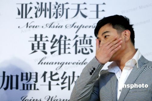 2009年3月9日,臺灣影視紅星黃維德加盟華納唱片簽約發布會在北京隆重舉行。蔡依林恩師陳澤杉送上繡有“金榜題名”的卷軸。事逢前日伊能靜博客突發感言表明已和庾澄慶離婚,使牽手門中的主角黃維德再次被推上風口浪尖。發布會中黃維德感嘆生活多揣,看到依舊堅定支持的歌迷突然落淚、抽咽。隨后的媒體訪問在問題逐漸深入的過程中黃維德最終難再支撐,匆匆離去。中新社發 袁方 攝