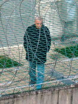 日前,弗萊茨勒在監獄里放風時的照片被媒體公布,從這組照片中我們看到,弗萊茨勒穿著藍色的牛仔褲和高領的黑色夾克,頭低垂,眼睛盯著地面,手深深地插在上衣口袋里。他在監獄的空場上一個人轉著圈子踱步,周圍是數米高帶著鐵絲網的監獄圍墻。