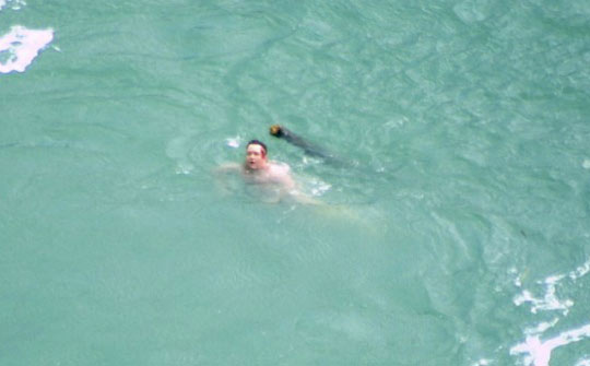 這名男子竟然拒絕接受救援人員的救助,繼續向中央游去。