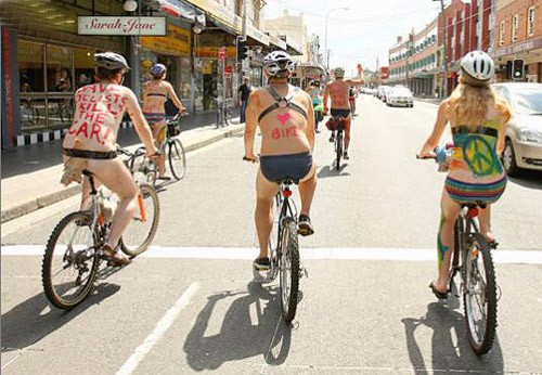 圖:彩繪、樹皮遮體蹬車 裸體自行車賽呼吁環保(4)