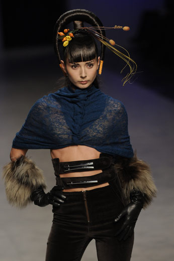 3月16日,模特在烏克蘭首都基輔舉行的時裝周上展示造型奇麗的發型設計。
