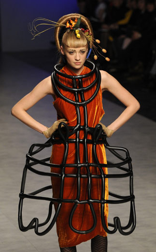3月16日,模特在烏克蘭首都基輔舉行的時裝周上展示造型奇麗的發型設計。