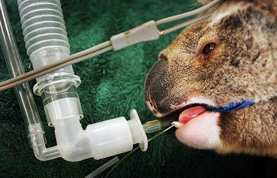 一只受傷的考拉在澳大利亞動物醫院接受治療。(自然歷史一等獎)