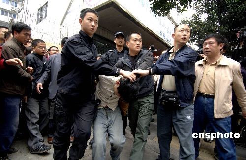 三月二十三日上午,福州警方在福州市區湖東路誠信典當行抓獲劫持三名人質的嫌犯,成功解救三名人質。這起劫持人質事件是該典當行的一名保安,他劫持了該典當行的三名工作人員作為人質,具體原因還在調查之中。中新社發 王東明 攝