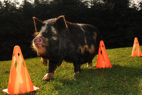 現在“蘇”已學會按照指令與人握手,通過隧道、在圓錐體周圍繞行,爬上坡道,甚至能完成從一數到八的數數。“蘇”的主人溫迪-斯科達摩里稱,“蘇”很有天賦。她相信,“蘇”不僅能在靈活性測試中擊敗犬類,而且能像一部電影中的明星豬那樣學會如何管理羊群。